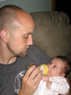 Michael finally had the chance to feed Lani a bottle. I have been pumping so that we have a supply for Grammy when I have to go back to work. Michael has been practicing with the bottle so that she will get used to taking it. She has been doing great which is a huge relief for both of us. I love this picture because I can’t help but wonder what is going through her mind. She is used to only seeing me at feeding times and now she is staring so intently into Daddy’s eyes. So sweet!!