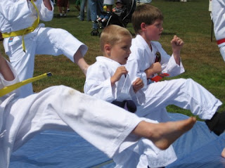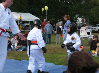 Wesley and Michael’s karate school did a demonstration at Old Home Day! Wesley did his kicks, punches, blocks and kumite (Sparring). It was fun to watch because we are not allowed to sit in on classes. He never wants to show us what he does at home so this is the first time I have seen him in all of his gear! Michael was not at the demonstration because he was out on calls for work.