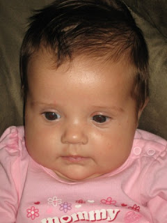 Lani turned two months old today. She is doing well and we are loving her more and more everyday! I didn’t think that would be possible. She has developed quite the personality and is definitely a mommy’s girl. I’m sure that’s mostly because I am her main source of food:) Her schedule tends to be cat naps during the day then bed between 9 and 10. She sleeps about 6-7 hours, eats, then sleeps 2-3 more hours.Lani spent some time with Grammie this week while I went on a few job interviews. She did great and I think that she and Grammie will enjoy their days together. I am glad that since I have to go back to work that she can be with Grammie because that is the next best thing to Mommy! Some of her favorites are the song “Itsy Bitsy Spider” and her swing. She also loves her toys that she lays under to look at. Soon she will be batting at them. She loves to be up on our shoulders so that she can suck on her hands. In any other position she still startles herself so her hands wont stay in her mouth. She gets so mad. Of course Wesley is her favorite big brother. He always says “Who loves you the best? I do” ! Too cute!