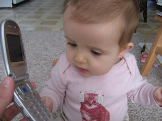 Lani loves hearing Daddy’s voice on speaker phone while he is at work! She knows that we are calling Daddy when I flip open my phone because she gets excited, flaps her arms, and says DADADADA with a big smile on her face! Too Cute!