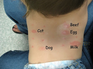 Here is the final result! The beef and egg look shiny because of the itch cream that the nurse put on the reaction sites! My poor little Lani!