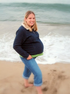 What sweet photos and story - I love the one of you on the beach and the one of your son kissing your belly. :)