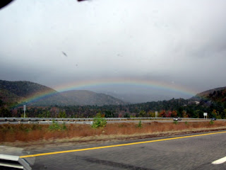 The view from atop a popular climbing spot in North Conway. Michael thinks one of the mountains is "Kearsarge North", but he is not positive.  A beautiful rainbow that we saw on our way up north! Unfortunately my camera doesn't do it justice. Not to mention that we were going about 65mph:) It was the best rainbow I have ever seen and I swear we actually drove right under it!!